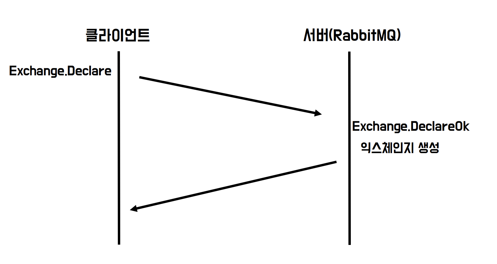위 코드는 익스체인지 선언하는 방법에서 설명했듯 클라이언트는 RabbitMQ 서버에 Exchange.Declare 요청을 전송하고, 서버는 Exchange.DeclareOk 응답을 반환합니다. 이를 통해 익스체인지가 선언되며, 존재하지 않을 경우 생성됩니다.