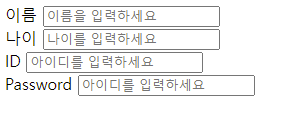 <input type="text" placeholder="이름을 입력하세요" /><br />
