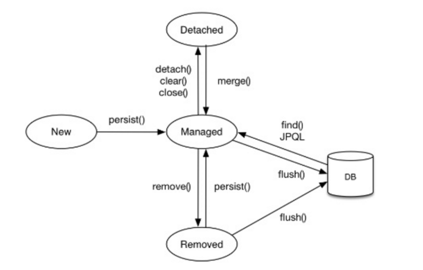 - 영속(managed) : 영속성 컨텍스트에 저장된 상태