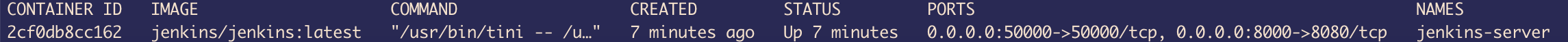 docker run -d -p 8000:8080 -p 50000:50000 --name jenkins-server --restart=on-failure jenkins/jenkins:latest
