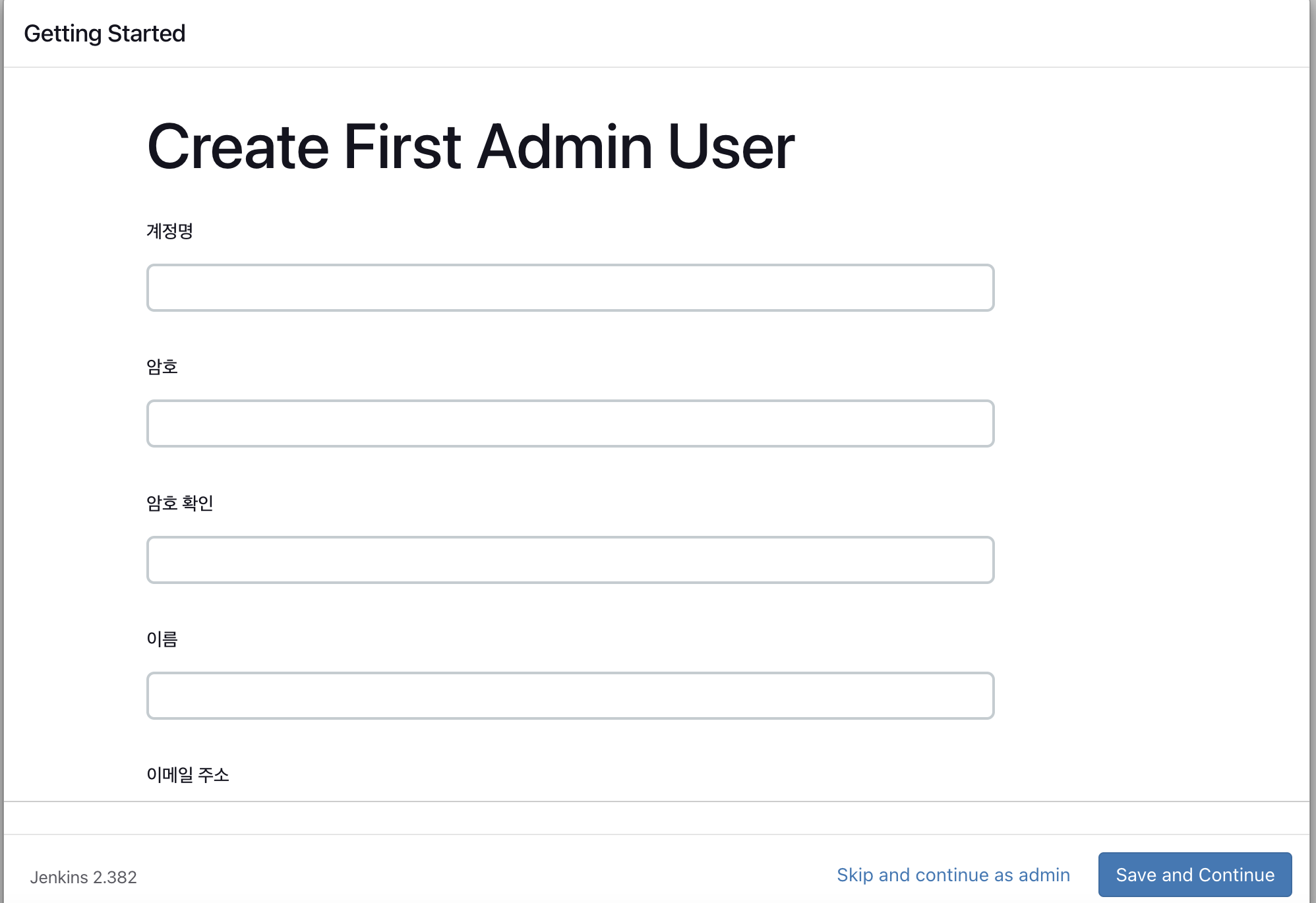 설치가 끝나면 계정을 설정하는 화면에서 계정을 설정하고 저장하고 넘어가서 Jenkins URL에 접속 가능한 URL을 입력합니다.