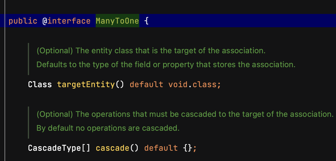 @ManyToOne, @OneToMany 등 연관관계를 설정하는 부분에 옵션으로 정의되어 있습니다.