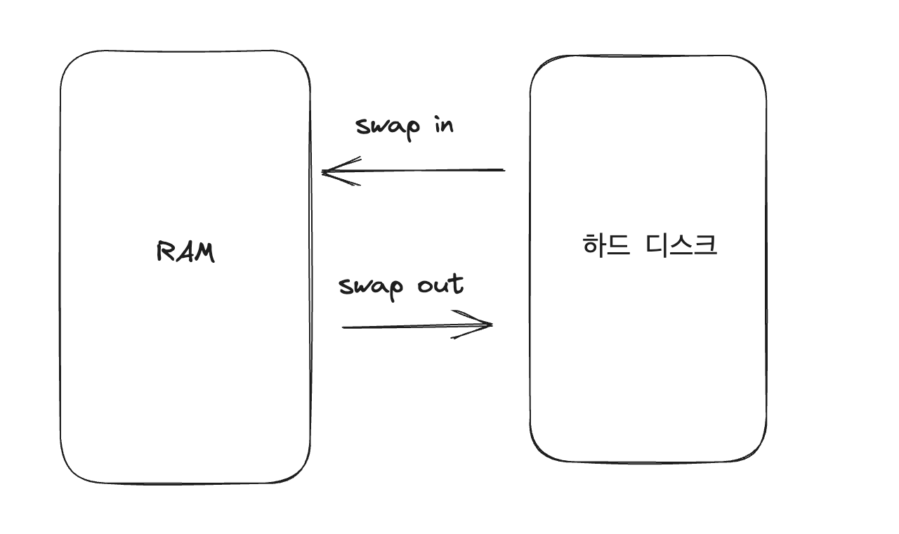 Swap in은 실제 메모리(RAM)가 가득 차서 더 이상 프로그램과 데이터를 수용할 수 없을 때, 하드 디스크의 스왑 영역에 있는 데이터를 메모리로 가져오는 과정을 말합니다.