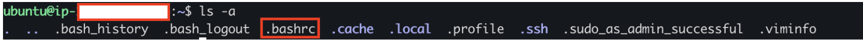 위 명령어를 입력하면. bashrc가 보이게 됩니다. .bashrc에 환경변수를 설정할 것입니다.