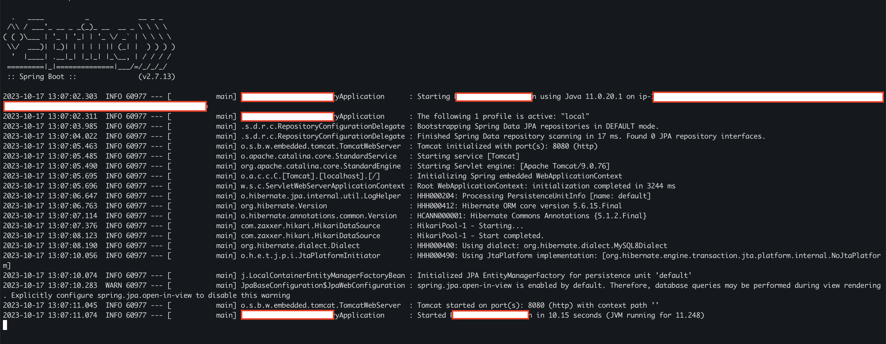 8. 위 명령을 실행하면 nohup.out이라는 파일이 생성이 됩니다. 해당 파일을 통해 실시간으로 애플리케이션이 실행되는 로그를 확인할 수 있습니다. 아래 명령어를 입력하면 확인하실 수 있습니다.