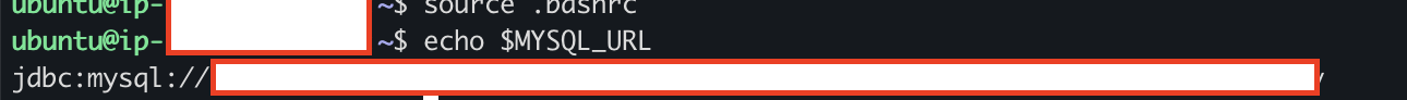 export MYSQL_URL=jdbc:mysql://엔드포인트:포트번호/데이터베이스