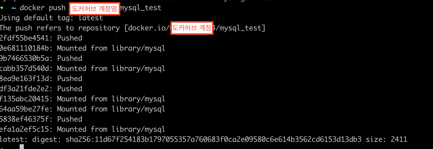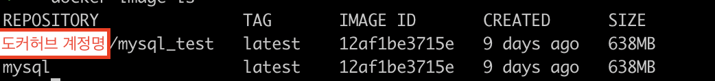docker tag mysql 도커허브계정명/test_mysql //docker tage 기존이미지명 추가할이미지명