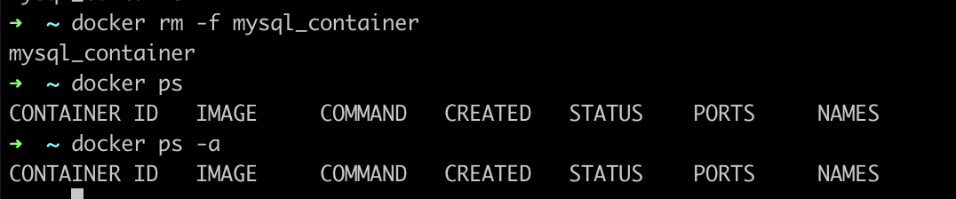 - 실행 중인 컨테이너를 -f 옵션을 통해 삭제할 수 있습니다.