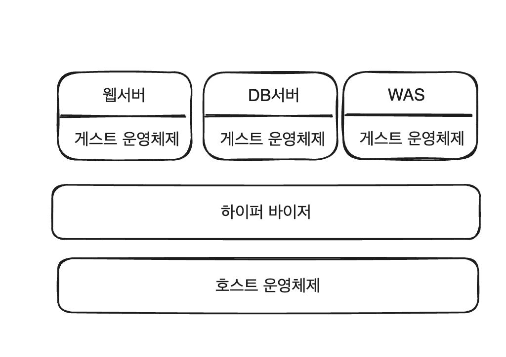 그리고 각각의 가상머신에는 운영체제가 있는데 이것을 게스트 운영체제라고 부릅니다.
