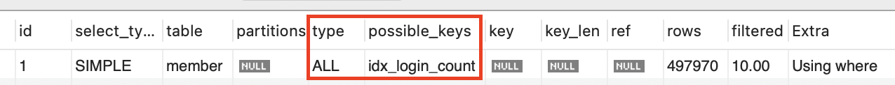 explain select * from member where login_count + 1000 = 10000;