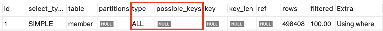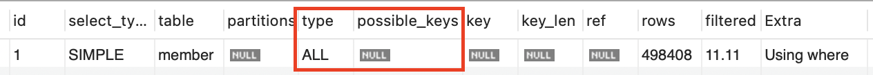 explain select * from member where created_at = '2024-06-30 18:12:11';