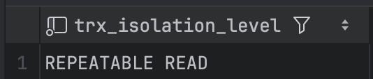 처음에 아무 설정을 하지 않고 조회하게 되면 MySQL의 기본 격리 수준인 Repeatable Read가 조회됩니다.