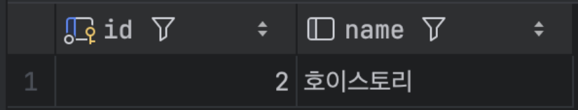 쿼리의 결괏값을 id는 2, name은 hoestory가 나온 것을 확인할 수 있습니다.