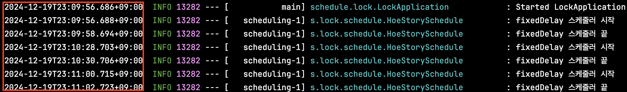 위 스케줄러를 실행시키면 결과는 아래와 같습니다.